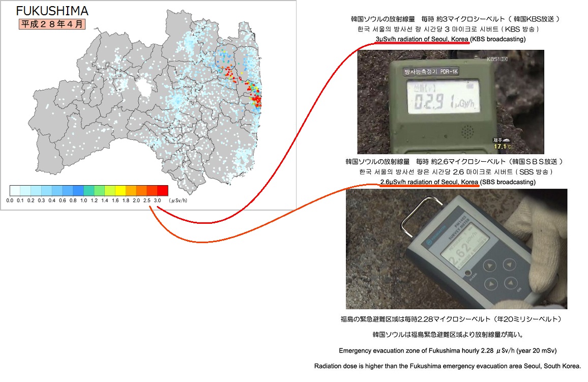福島県のほとんどの地域では、韓国よりも放射線量が低い。
