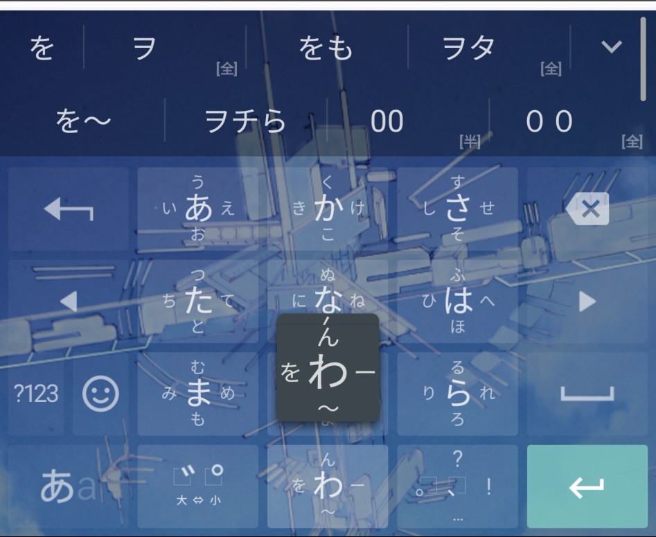 表示されてる子音が「a」の文字に指を合わせて母音「a」そのまま「i」なら左にスライド「u」なら上にスライドといった感じです楽かも