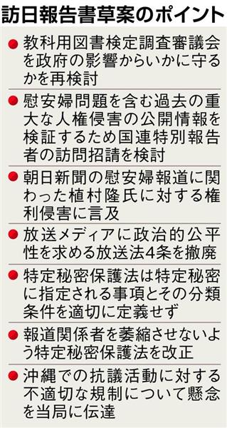 「最初から結論ありき、だった」。国連人権理事会の特別報告者、デービッド・ケイ氏が6月中に理事会に提出する「訪日報告書」の草案を読んだ政府関係者は、こう吐き捨てた。