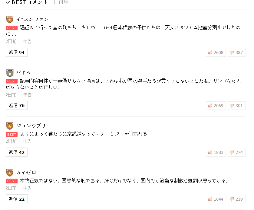 しかし、コメントの評価上位は国の恥、謝罪しなければならない、が並んだ。