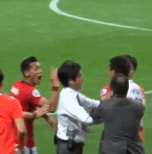 指で3-0と示して嘲笑に怒った控え選手のDFペク・ドンギュがピッチに乱入したって言ってた気がしたが。
