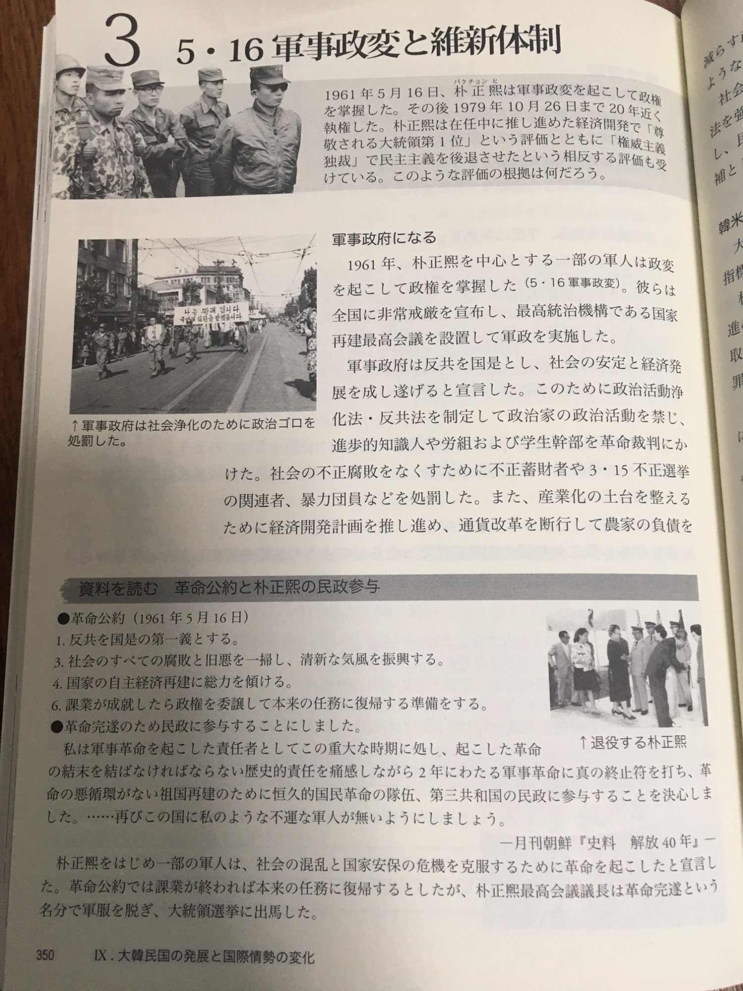 1961年5月16日、朴正煕は軍事政変を起こして政権を掌握した。
