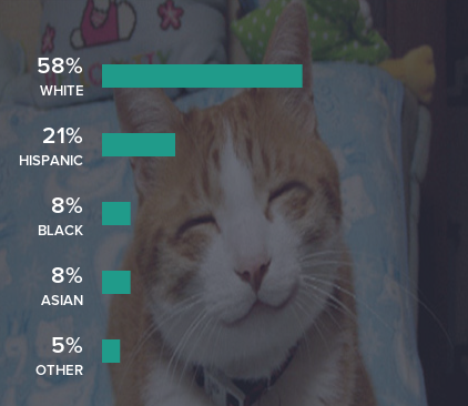 ASIAN 52%、WHITE34%、HISPANIC12%、OTHER2%、だった!