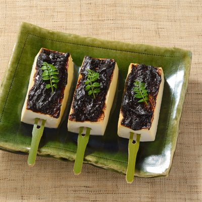拍子木型に切った豆腐に竹串を打って焼いた「田楽」、