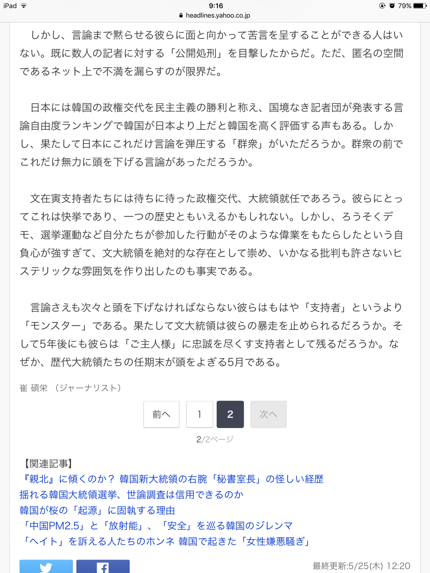 http://www.chosunonline.com/site/data/html_dir/2017/06/26/2017062600727.htmlこの辺で韓国人の意見が聞きたい。