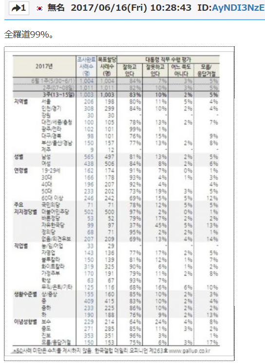 http://japanese.yonhapnews.co.kr/Politics2/2017/06/23/0900000000AJP20170623001100882.HTML文大統領支持率 2週連続下落し74.2% 記事入力 : 2017/06/26 09:31
