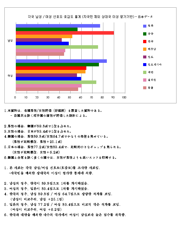 아시아에서 한국남자, 일본여자 이미지가 가장 좋은것은 팩트이다.