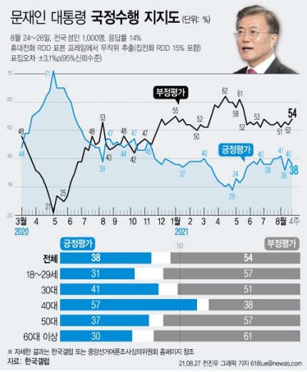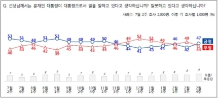 文在寅(ムン・ジェイン)大統領の国政遂行に対する支持率が世論調査機関によって'急反騰'と'最低値更新'で克明に交錯した。