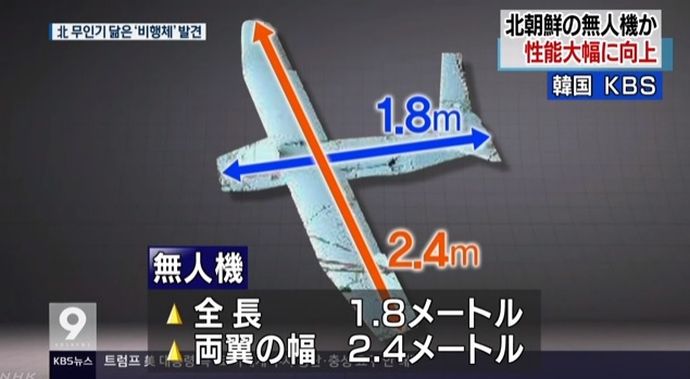 韓国軍によると、無人機に搭載されていたソニーのカメラから、在韓米軍のTHAADの発射台などを撮影した画像約10点を発見。軍は、無人機が北朝鮮を出発し、星州を偵察後、戻る途中に燃料不足で墜落したとみている。yahooニュース