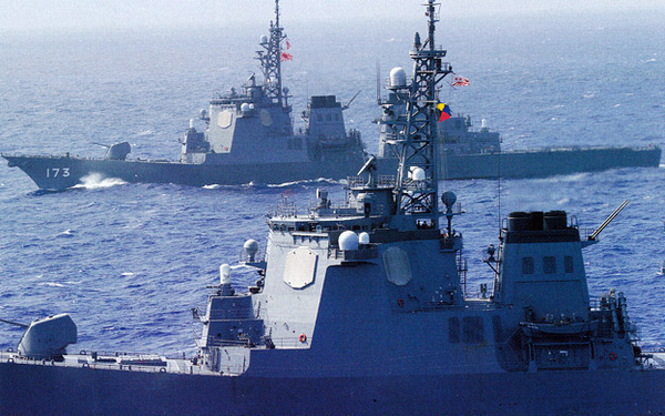 画像はZ旗をあげた海上自衛隊イージス艦「ちょうかい」。これを貼ろう。この当時の世相は、旭日旗持ってるのは右翼だの言われてたわ。