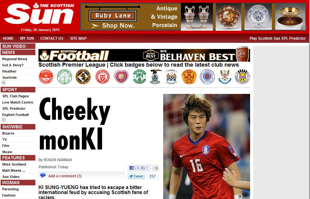 2011年:キ・ヨンソン、猿真似の言い訳として旭日旗の嘘