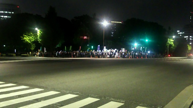 14日、東京・国会議事堂前では法案可決に反対する人々によるデモが行われた。