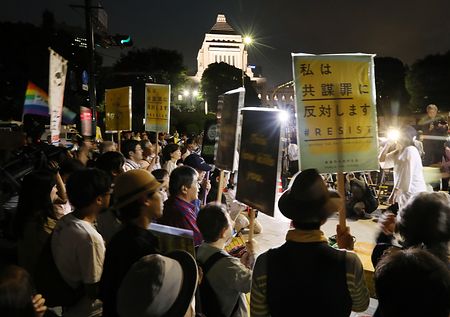 歩道を埋め尽くす5000人を超える、共謀罪に反対する「一般市民」が集まった。