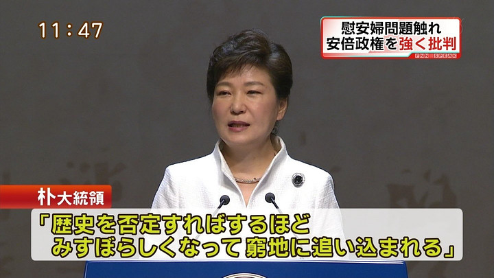 > 朴槿恵(パク・クンヘ)大統領は1日、第94周年3・1記念日の演説を通じて、「加害者と被害者という歴史的立場は千年の歴史が流れても変わらない」とし、日本の前向きな変化と責任ある行動を求めた。朴大統領は、「日本が韓国のパートナーになるには、歴史を直視する姿勢を持たなければならず、そうする時に初めて両国の信頼と和解、協力も可能だ」と言及した。