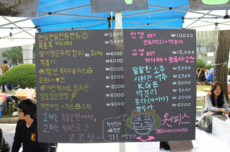 보통 학생들은 주점을 열어서 술을 팔고 공연은 초청한 가수가.日本の場合 芸能人もくるけれど、学生もいろいろなイベントをするよね。