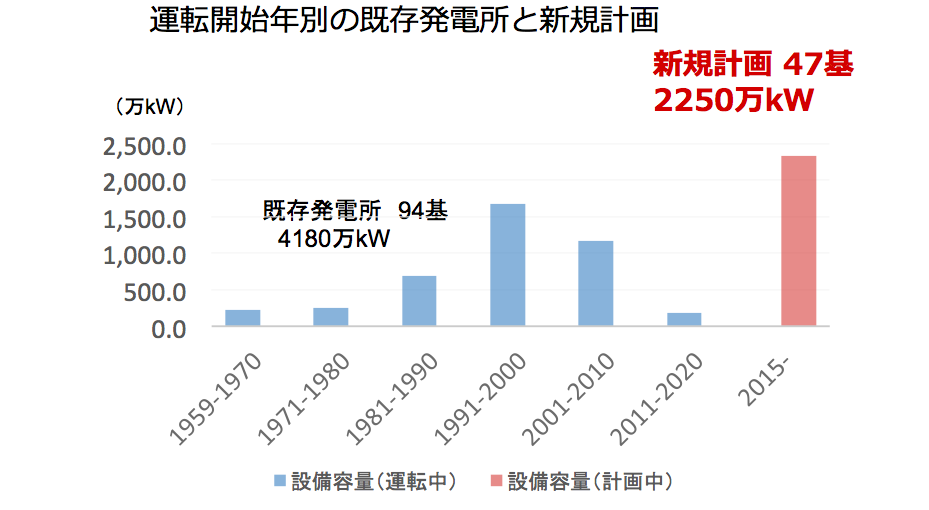 24基が稼働中だが、新設予定の6基が白紙に。