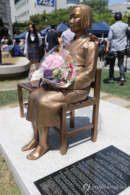 (서울=연합뉴스) 이상학 기자 = 10일 서울시 성동구 왕십리광장에서 '성동평화 소녀상 제막식'이 열렸다. 123cm 높이의 소녀상은 일본군 위안부 할머니의 인권과 명예 회복뿐만 아니라 미래세대인 청소년들에게 아픈 과거의 역사가 반복되지 않도록 교훈을 주자는 성동구 학부모들의 제안으로 시작됐다. 2017.6.10産経ニュース 2016.11.24 07:24