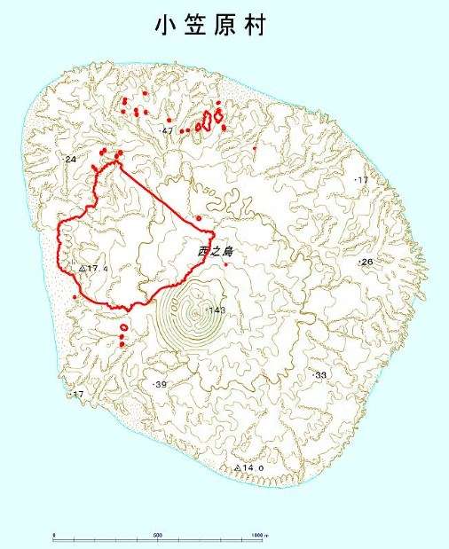 地形図によると、西之島の面積は272ヘクタールで、東京ドームの面積の約58個分に相当する。