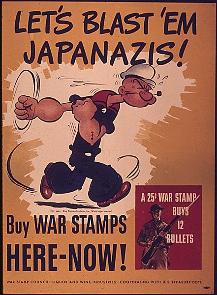 전시에 감정이 최고조로 격해졌을 무렵에는, 일본인이란 밥 먹듯 배신하고 야만적이며 이상하리만치 잔인한 행동을 즐기고 광신적인 '원숭이 인간'이라고 여겼다.