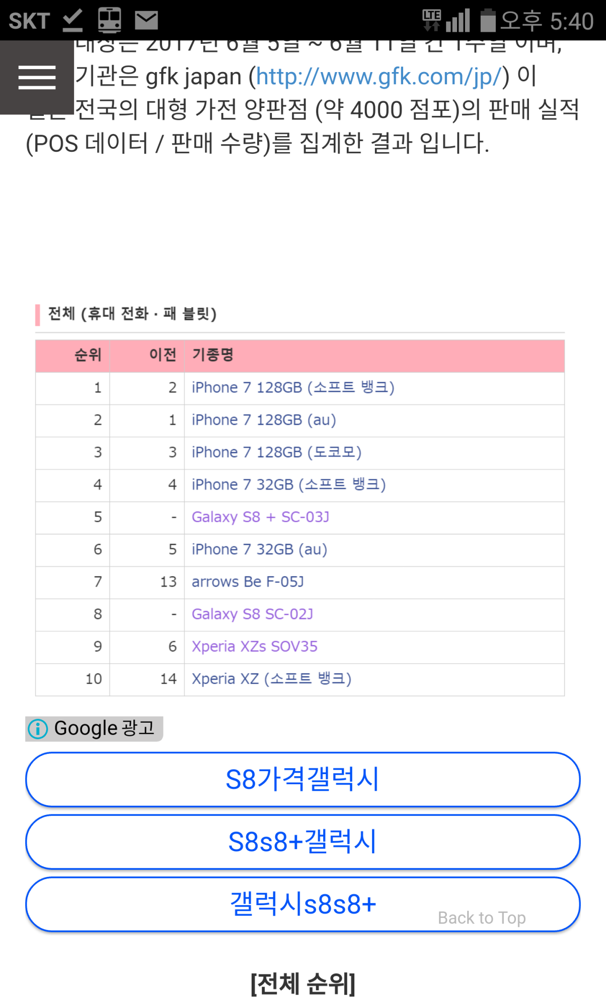 속보) 삼성 갤럭시s8 스마트폰 일본내 판매 호조..!!