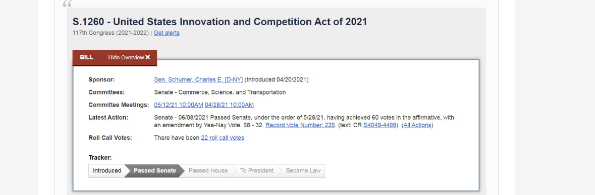 「US Innovation and Competition Act of 2021