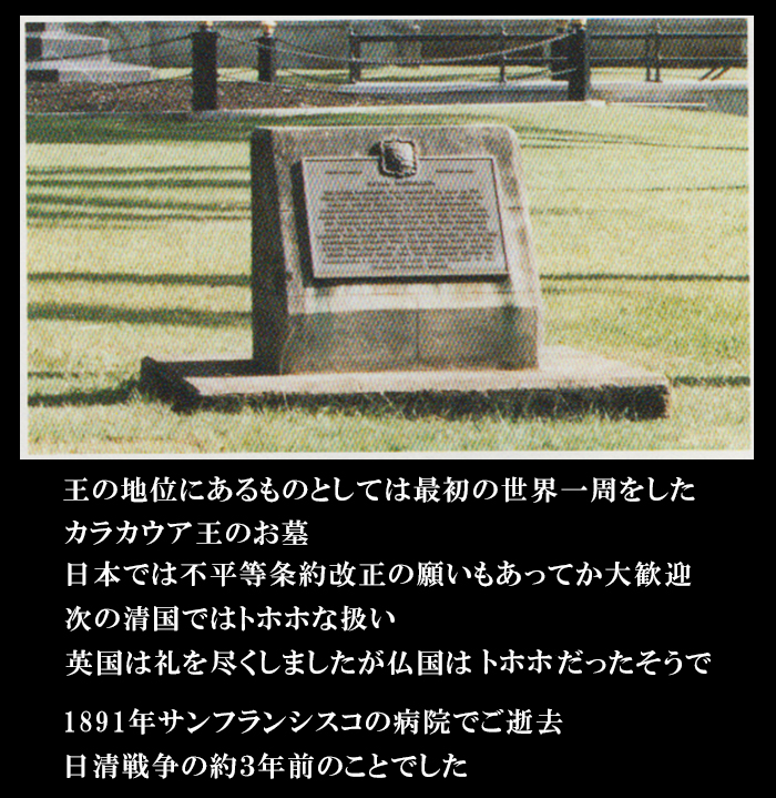 来日したカラカウア大王は、アメリカ人の随行員たちを出し抜き、日本人通訳を伴い、夜中に秘かに赤坂桂離宮を訪ねると、明治天皇との単独会見を願い出ました、天皇側は夜中の訪問を不審に思いましたが、会見に応じることにしました。