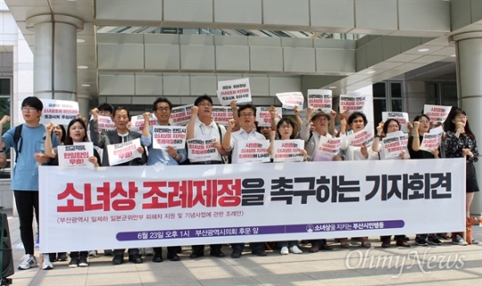 【釜山聯合ニュース】韓国・釜山市議会の福祉環境委員会は23日、同市内の日本総領事館前に設置された旧日本軍の慰安婦被害者を象徴する「平和の少女像」を保護する法的根拠となる条例案を可決した。