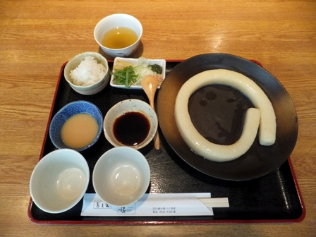 「どて煮(モツを赤味噌と砂糖で甘辛く煮たもの)」の写真添付。おきゅうとと見た目が似たような食べ物が秋田か山形にあった気がするのですが名前が分かりません。こんにゃくみたいな感じで食感がゴワゴワしていた記憶があります。