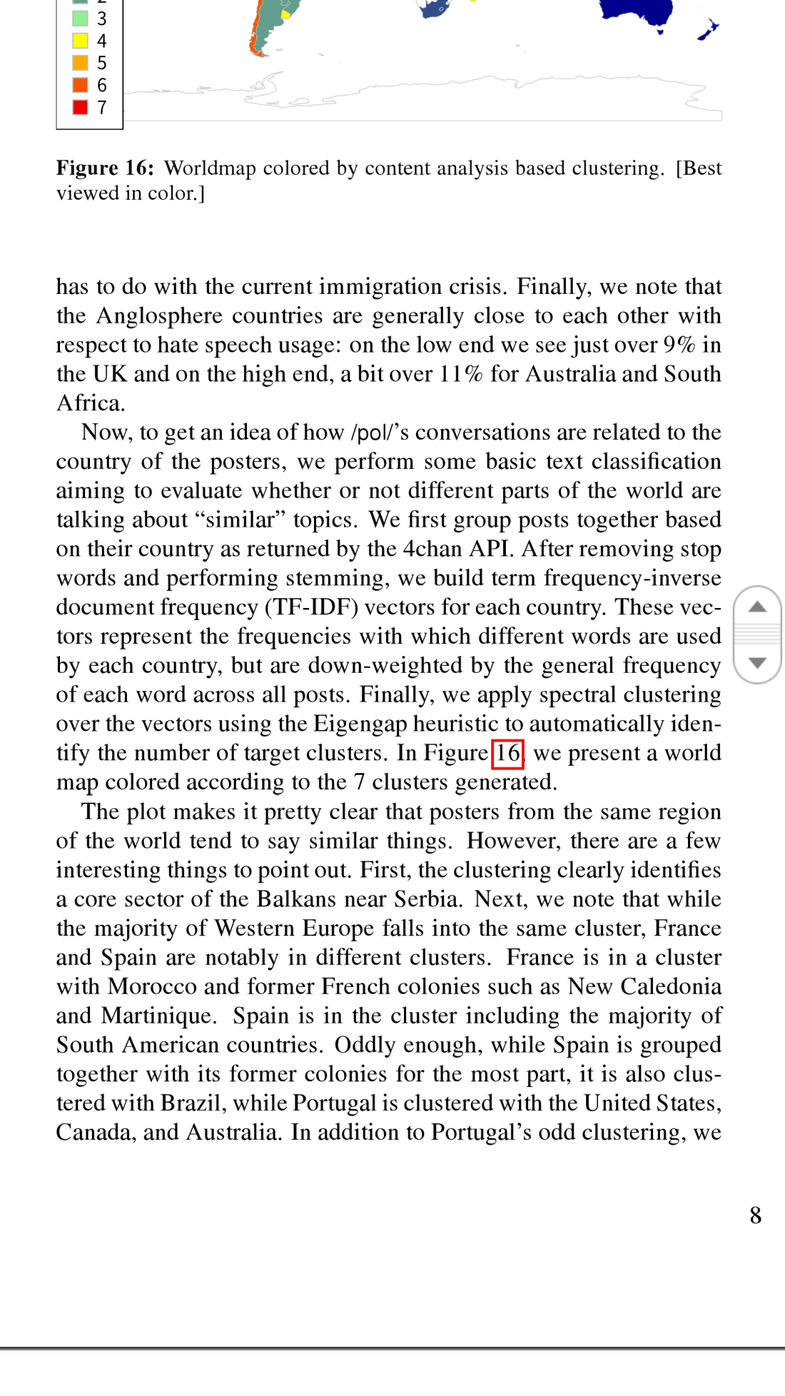 図15は、/ pol /に1,000件以上の投稿がある、国ごとの嫌悪発言を含む投稿の割合のヒートマップをプロットしたものです。