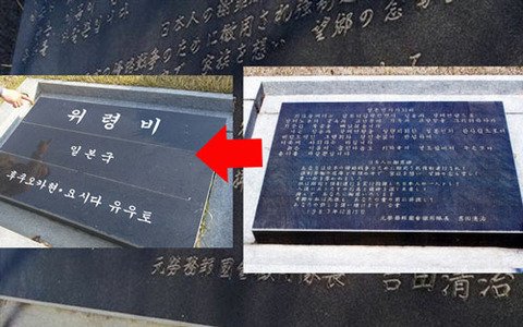오쿠씨는 전날 경찰 조사에서 "사죄비의 내용이 역사적 사실과 달라 사죄비 명의자 아들의 위임을 받아 교체한 것"이라고 범행 사실을 인정했다.