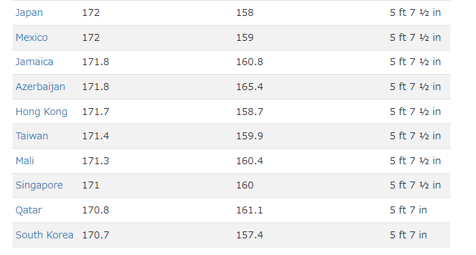 で、背が高いことのメリットって、一体何?平均身長なんて両国そんなに変わらないのに。