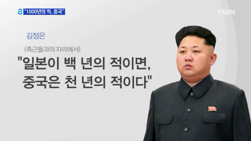 김정은은 측근들에게 "일본이 100년의 적이면, 중국은 천년의 적"이라는 말을 습관처럼 하고 있는 것으로 전해집니다.