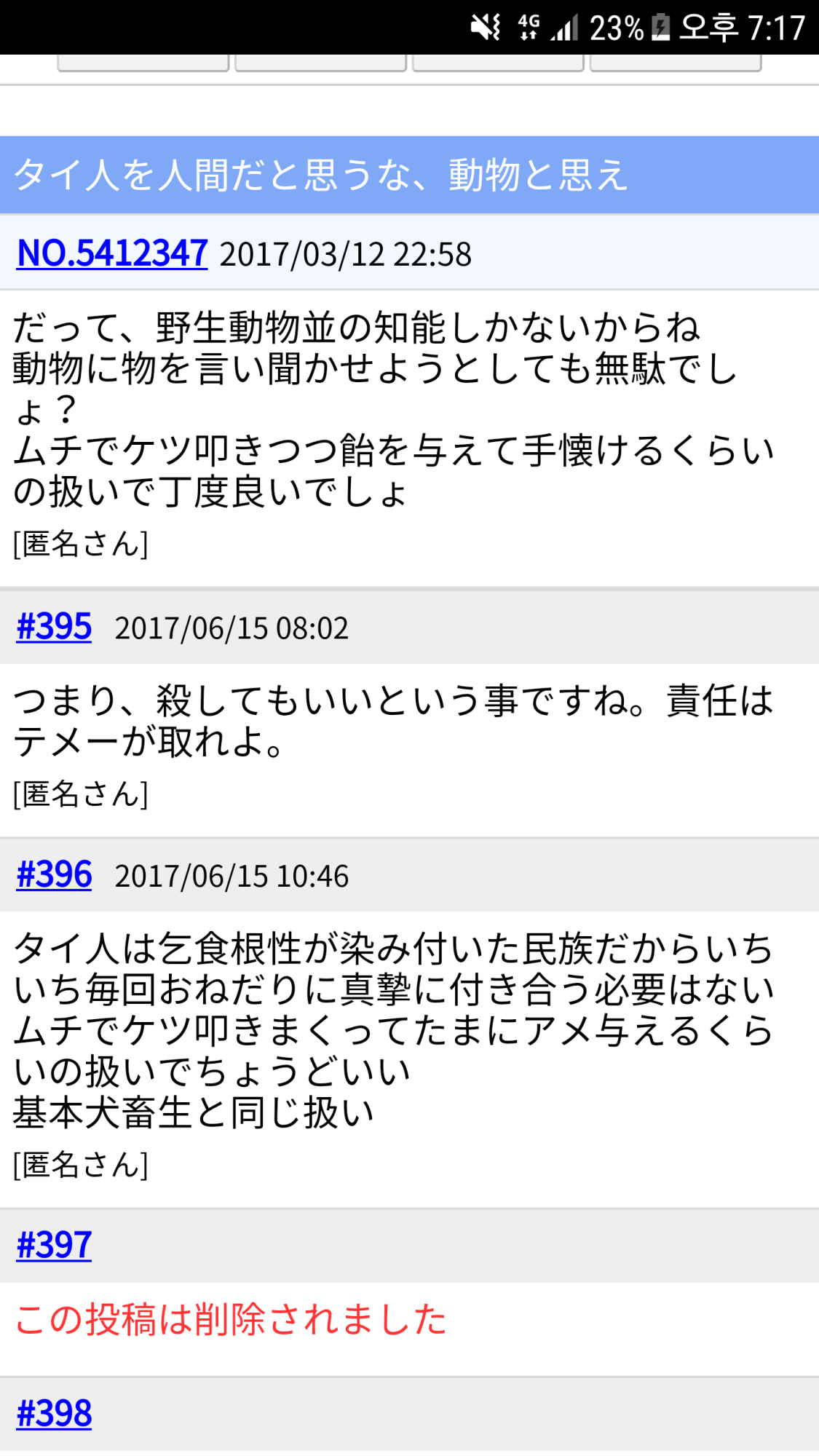 タイや台湾や中国が、韓国人の掲示板を見たら、嫌韓激増すると思うがね。