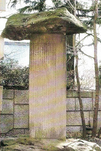 1905년 러일전쟁 때 함경지방에 진출한 일본군 제2예비사단 여단장 소장 이케다 마시스케[池田正介]는 주민들을 협박하여 비석을 파내 일본으로 옮겼다. '군국일본'의 상징인 도쿄 지요다[千代田]구의 야스쿠니신사[靖國神社]에 방치되었다.