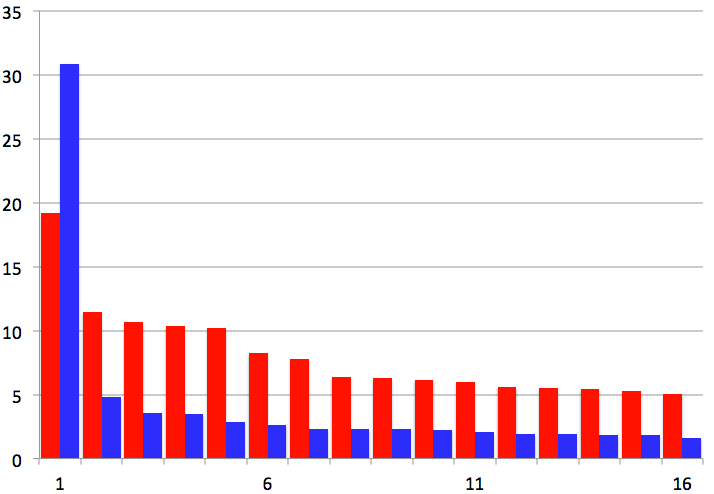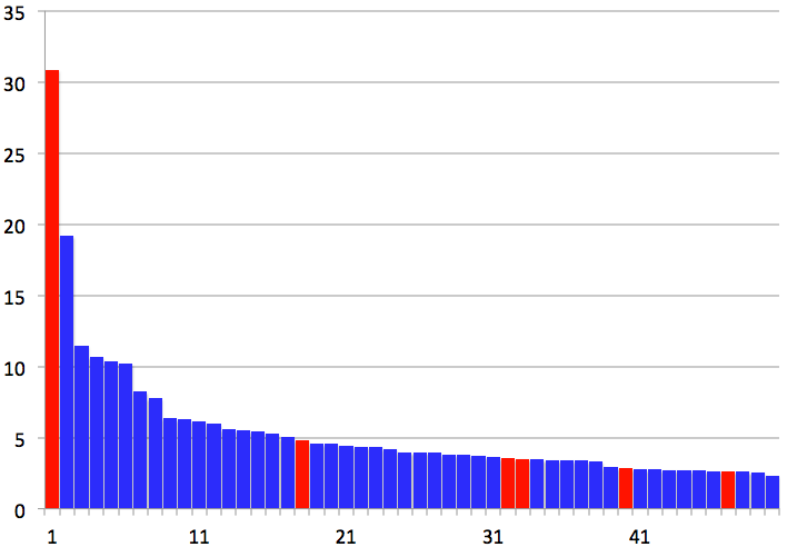 また、広州さんのデータ見ると日本の多様性と韓国の偏りが良くわかるし