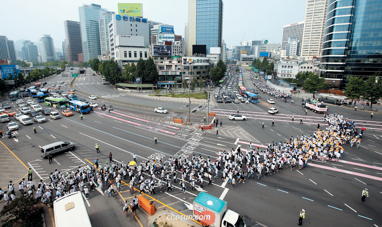 28일 오후 서울역 광장에 모여든 민노총 보건의료노조 조합원 2000여 명이 광화문광장을 향해 행진을 시작했다. 약 2㎞ 구간을 2~3개 차로를 점거하고 움직였다. 경찰은 주변 교통정리를 했다. 차벽과 살수차는 배치하지 않았다. 민노총 최종진 수석부위원장은 "촛불 혁명을 완수해야 한다. 6월 30일 총파업은 오늘부터 시작이다"고 했다.