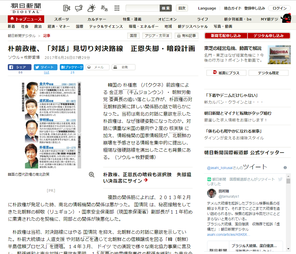http://www.asahi.com/articles/ASK6T5S0ZK6TUHBI01N.html日本のニュース(朝日だけど)を紹介しておいて捏造判定し独自解釈(反日論法)を国民に流す韓国メディア。