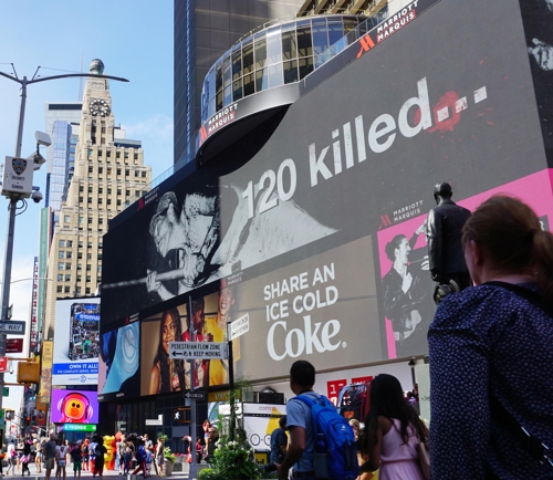 映像は15秒の長さで、スクリーンは横66メートル、縦13メートルとタイムズスクエアで最も大きい。
