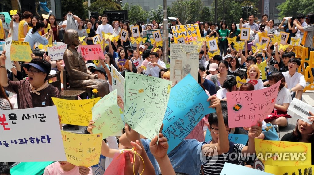 정대협은 성명서를 통해 "일본 정부는 제대로 된 공식 사죄와 법적 배상은 전혀 하지 않은 채 한일 합의를 이행하라고 압박하고 있다"고 비판했다.