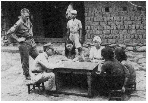 この映像に映っているのは中国兵、米兵、それと国籍不明の女達。女達は怯えているように見える。