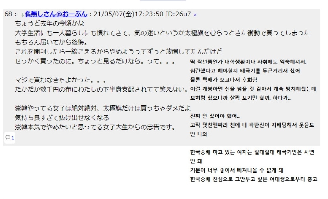 不買運動で日本と戦っている自分を独立闘志になぞらえて、マスターベーションできれば良いのだ