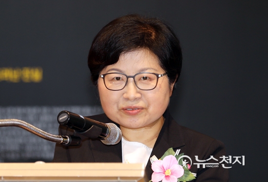 [천지일보=강은영 기자] 정현백 여성가족부 장관이 10일 오후 서울 종로구 대한민국역사박물관에서 열린 일본군 ‘위안부’ 피해자 특별기획전 기념행사에서 축사를 하고 있다.