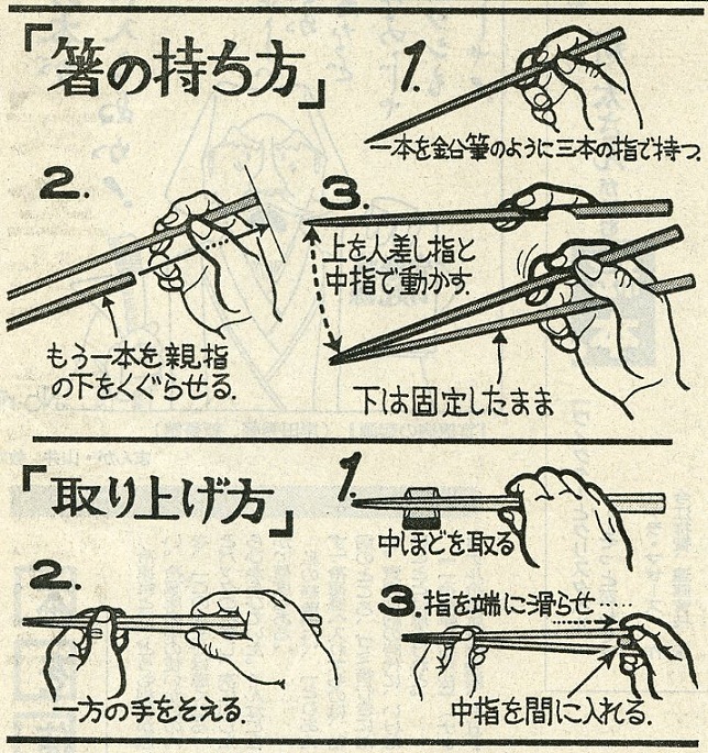 一本は人差し指と中指で、もう一本は親指と薬指でって感じ。