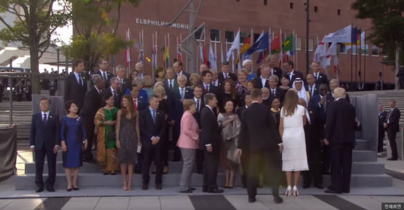 彼はドイツのメルケル首相を左手を振って誘導したが、メルケル首相は彼に1ユーロのチップも与えなかった。www韓国人も自国の大統領だからって遠慮することはないのに