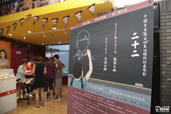 A poster of "Twenty Two" displayed outside a theater in Beijing holding an advanced screening, on July 7, 2017. [Photo/ China.org.cn]The film encountered a series of difficulties during production, including the withdrawal of investors. Chinese actress Zhang Xinyi personally provided 1 million yuan to help finish the project.