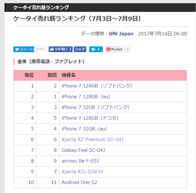 後でTCAで確認しときます。SIMフリーだと上位にHuaweiがいくつも入ってるね。