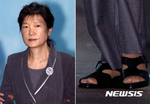 朴槿恵さんは風前の灯。발가락 부상을 이유로 지난 재판에 불출석했던 박 전 대통령은 이날 검정 샌들을 신고 공판에 출석했다.