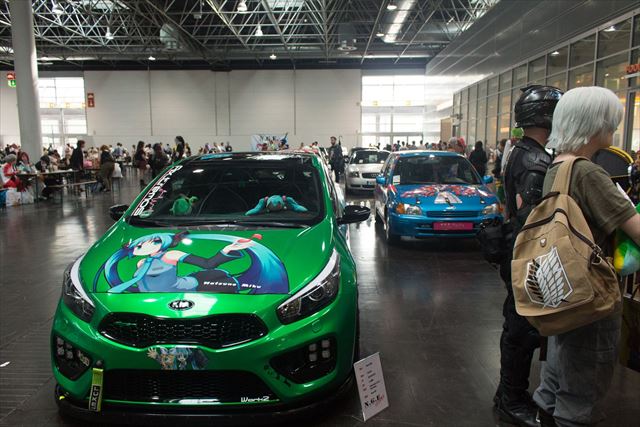 この『アジア・アレーナ』の特徴は痛車コンテストやコスプレコンテストも平行して開催されるところ。中には日本の秋葉原での痛車のイベントに参加経験があり、日本のアニメや痛車を正しく健全にヨーロッパへ普及活動をする参加者もいるとのこと。まだまだドイツでは一般社会の『ヲタク文化』への理解が難しいのだとか。たまたまSNSで見掛けた痛車や改造車を真似だけして、ドイツの法規制を考えていない人もいるとあり、法を厳守し、健全な『ヲタク文化』を一緒に楽しもう!という目標を立てて、文化拡大を目指しているそうです。