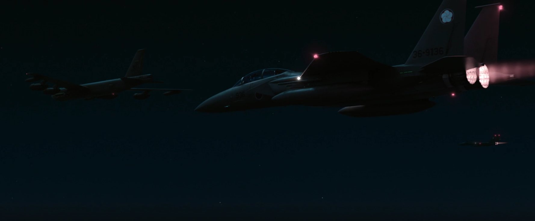 영화에서, 미 공군의 B-52를 호위하는 F-15J1987