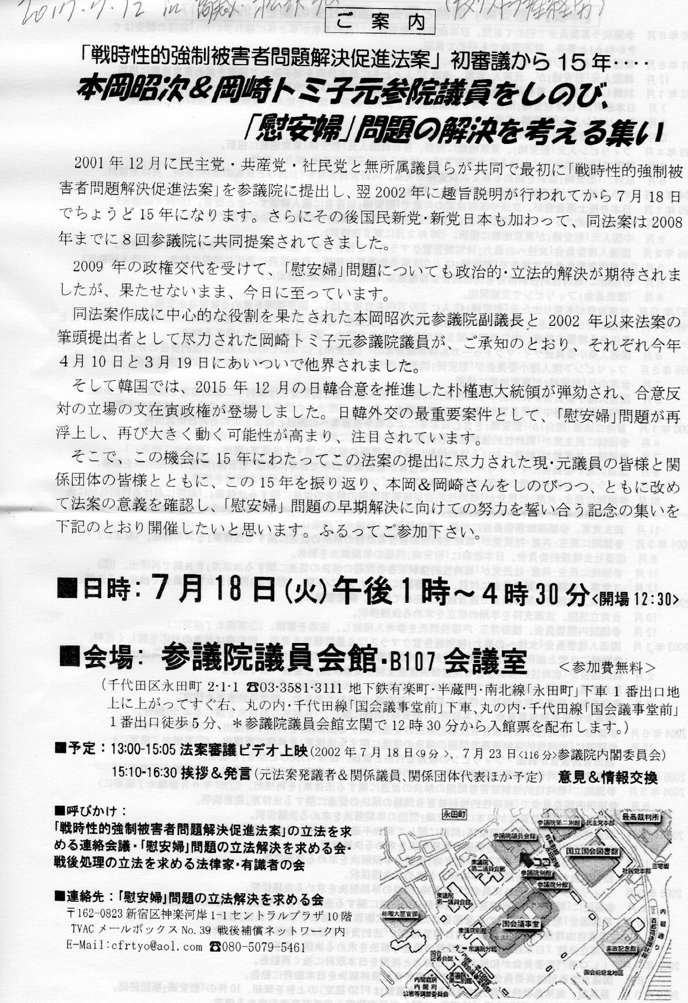 일본 시민단체인 '위안부 문제의 입법해결을 요구하는 모임'은 오늘(18일) 도쿄 참의원 의원회관에서 '위안부 문제의 해결을 생각하는 집회'를 개최했습니다.